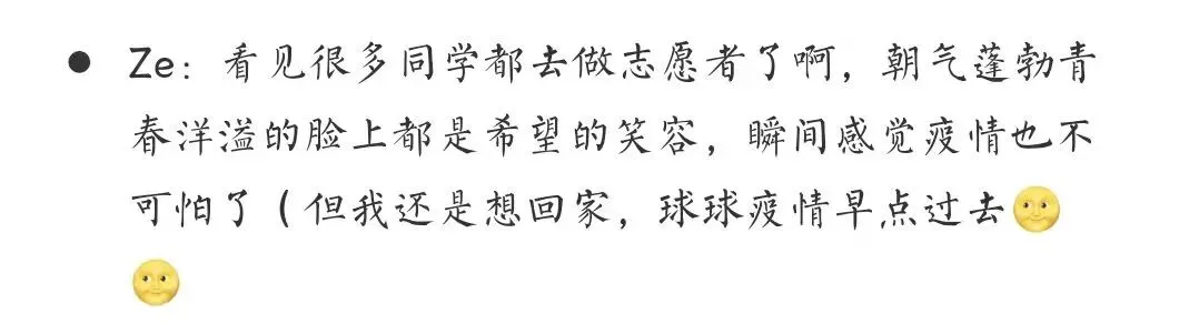 心愿便利贴的部分,距离、时间、感情、梦想,大家书写着对未来充满着向往和期待,等到疫情的海浪褪去,那些过往的遗憾不也会被卷走,字里行间是闪着微光的宝贵记忆。