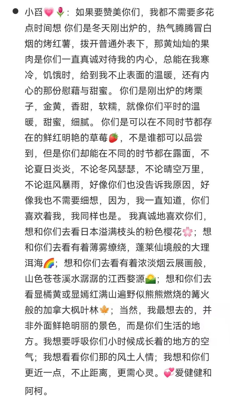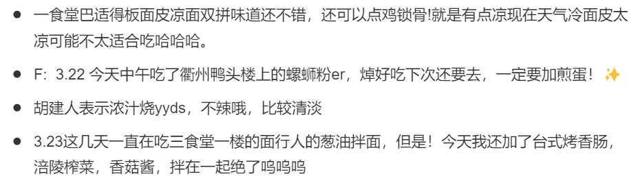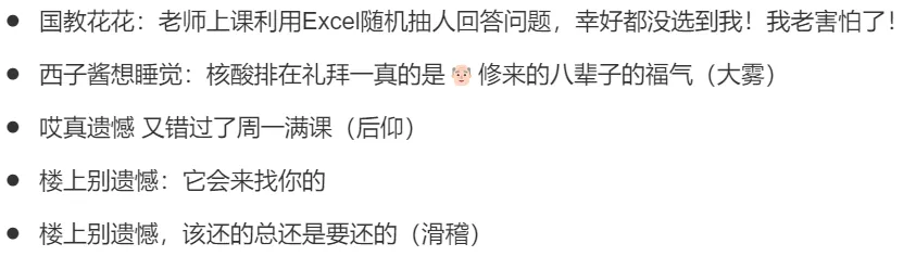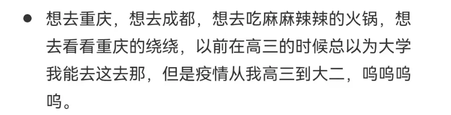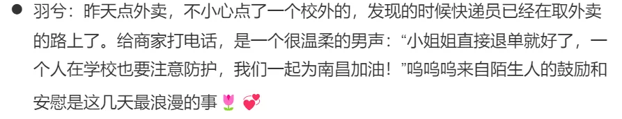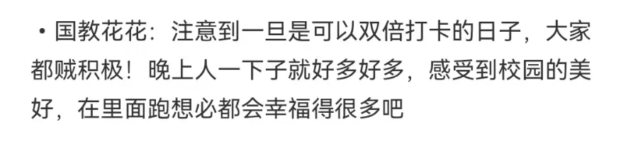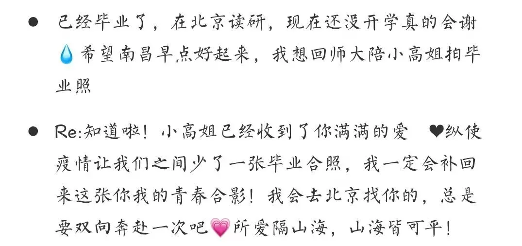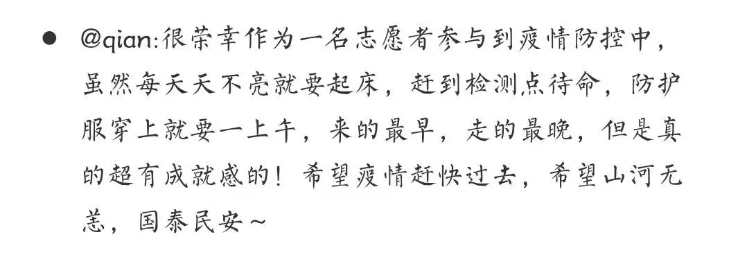 在文档中,除了志愿记录的心得感触,我们还看到了毕业学子对母校的关心,核酸检测后一碗热气腾腾的面条,生活中的快乐美好瞬间记录以及 非常“疯狂”的安利(我们也偷偷收藏了很多)这些简单却不失生活气的内容让这份文档爱意生生不息。