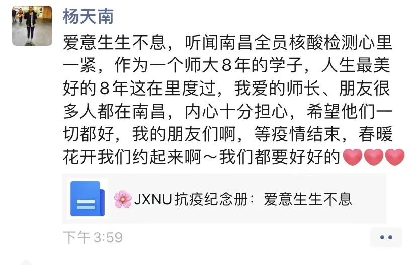 来源:《JXNU抗疫纪念册》 师大er的朋友圈截图