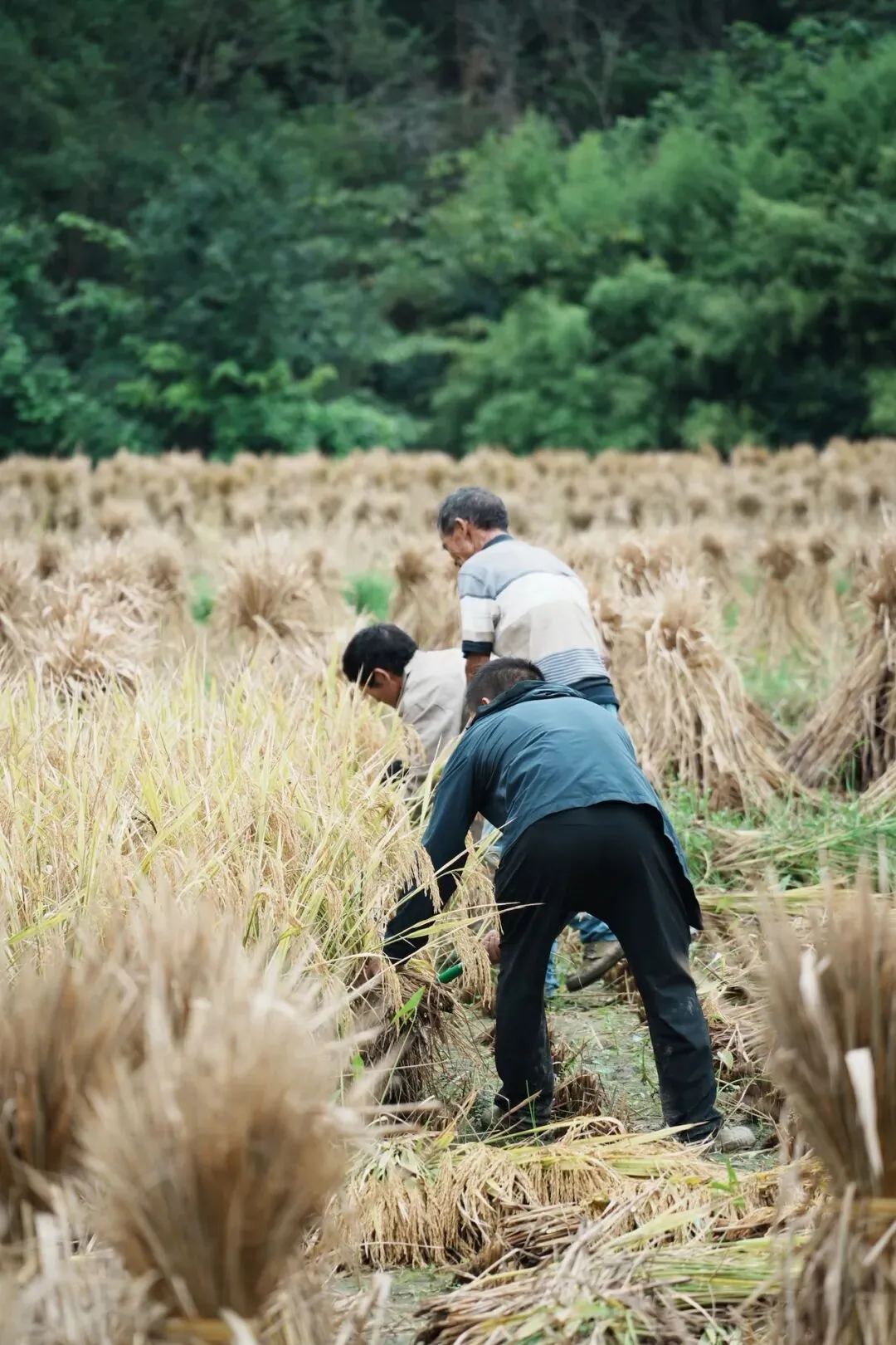 出了溶洞以后,还可以坐一段船,去看看龙字梯田。我们去的时节梯田已经收割了,但也依旧充满乐趣。我拍照给我妈看,我妈说,怎么现在还是手割麦子呢?
