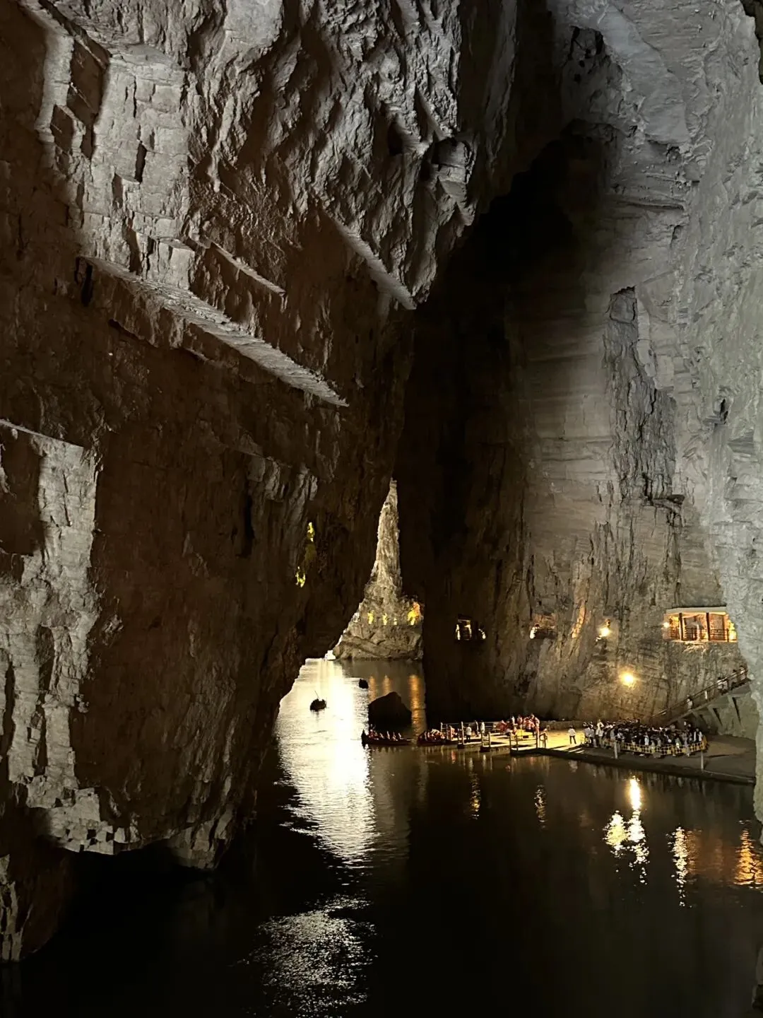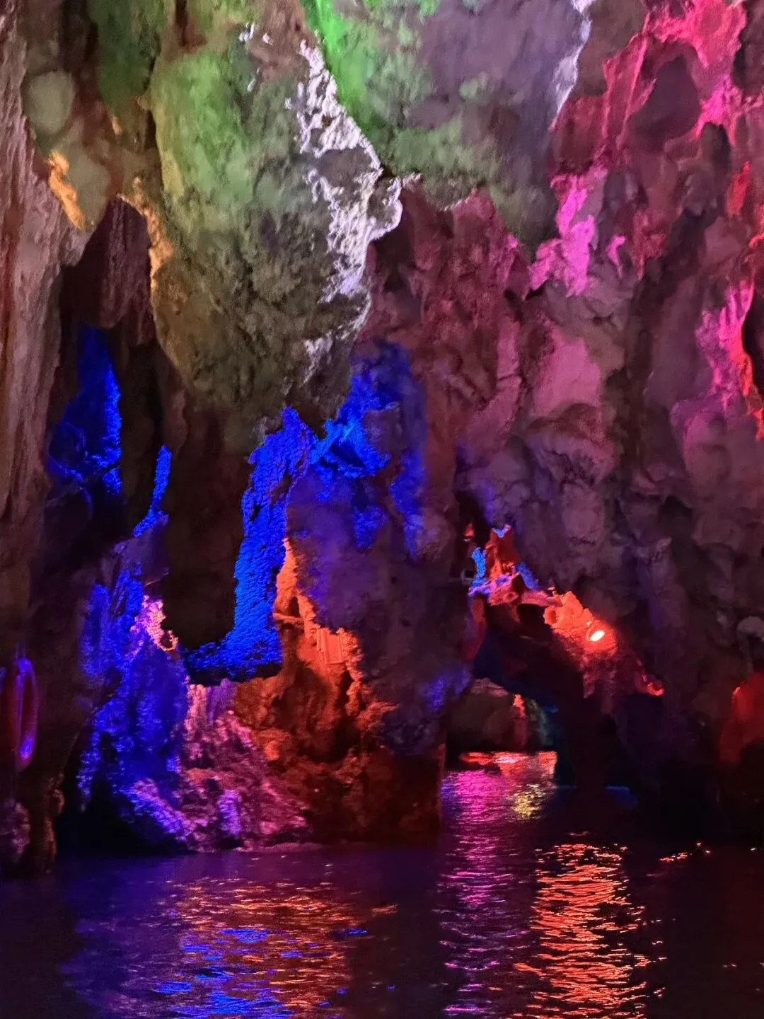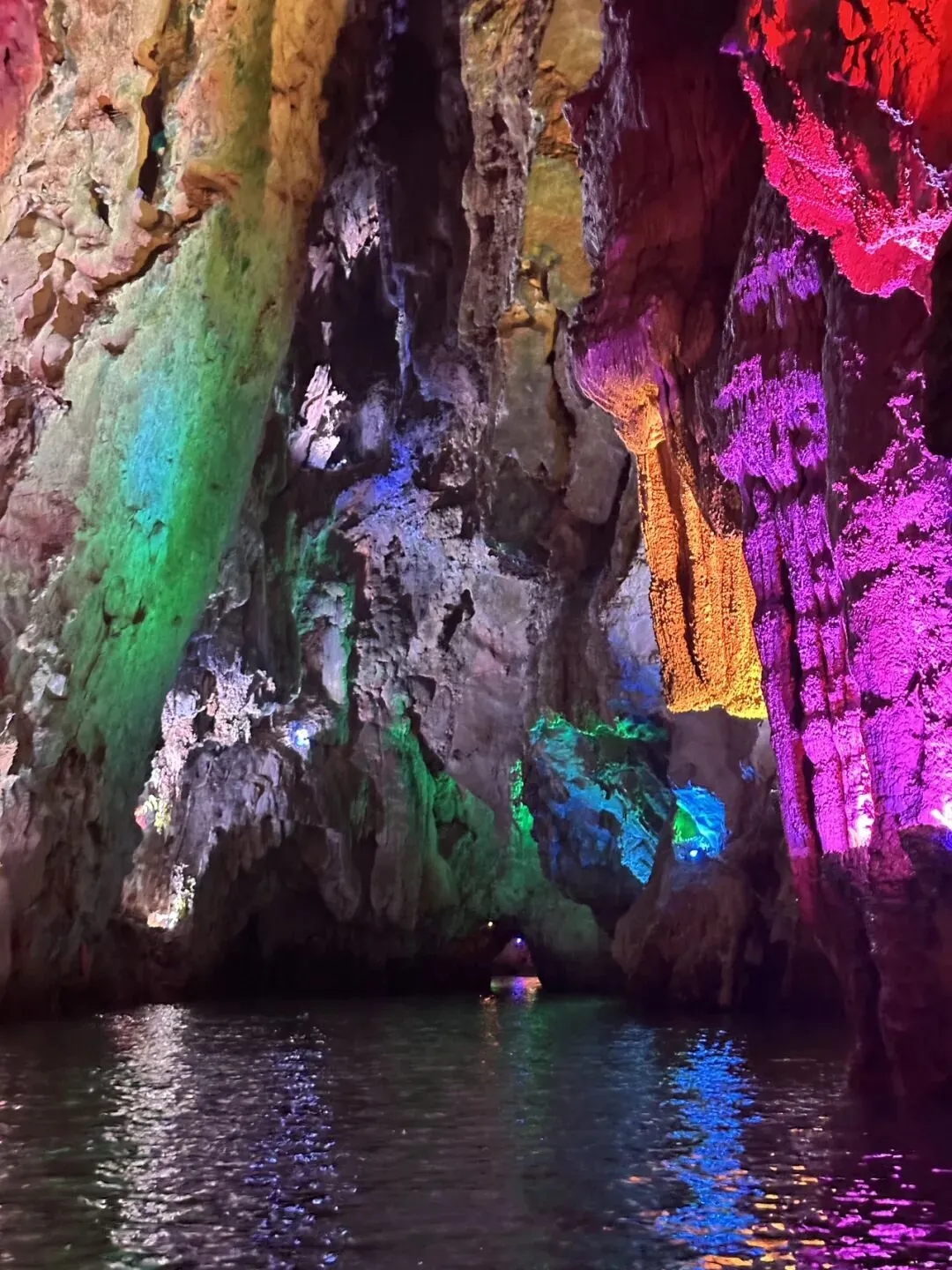 在这里已经开发出来的有【一进龙宫】和【二进龙宫】,需要坐船进入。 晃晃悠悠从狭小的洞口进去看到别样的溶洞,简直太太太太新奇了。我们一家子完全就是没见过世面的猿猴,嗷嗷在里面叫唤。 本来以为去了织金洞,就已经到了巅峰,没想到龙宫又是完全不同的类型。织金洞是旱洞,龙宫是水洞,虽然都是看变幻莫测的钟乳石,但体验感完全不同。