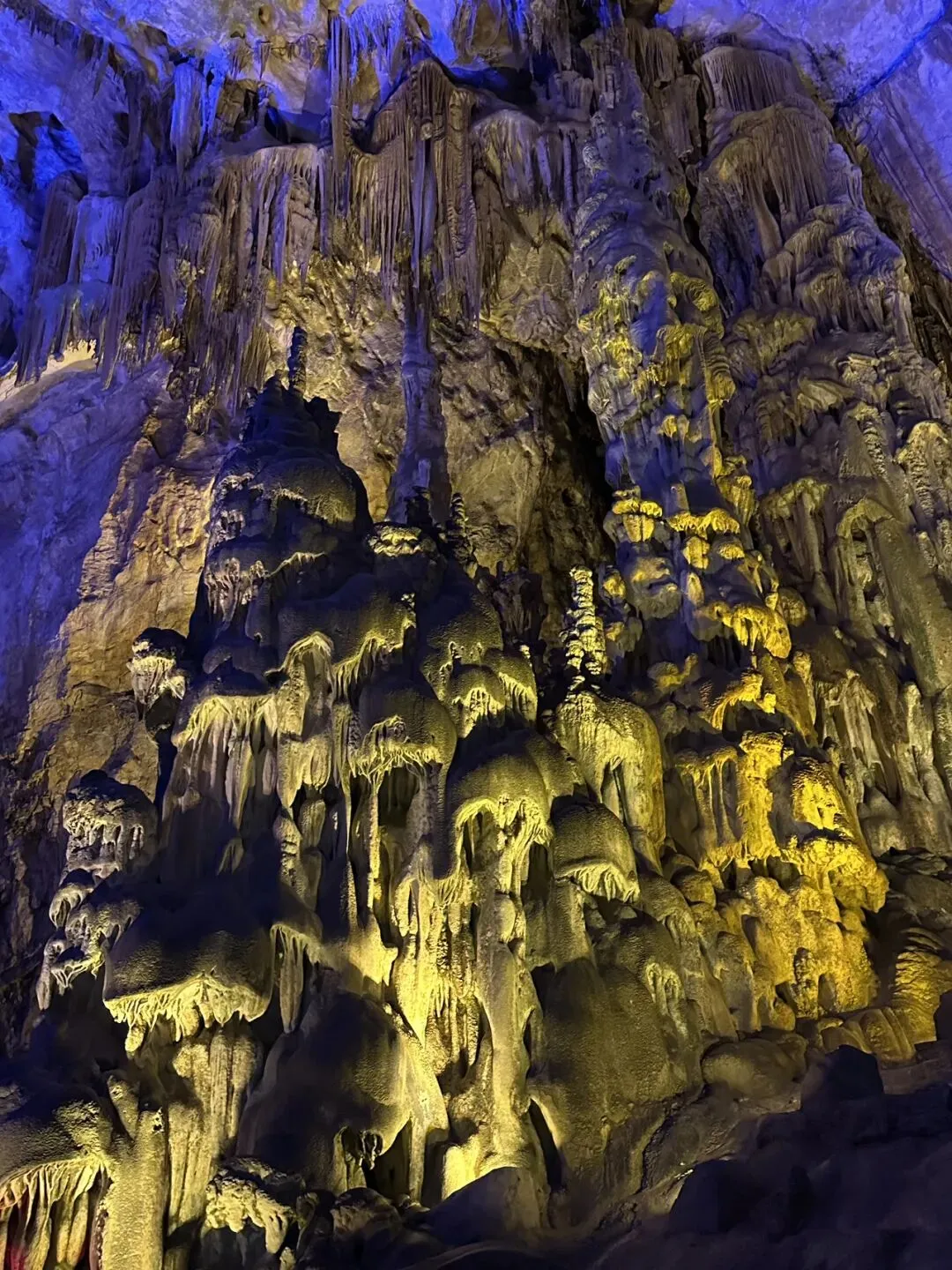 织金洞里的钟乳石,是我迄今为止经过的最最精巧、最最细致的。可以形容为不可思议。感觉老天爷是上了一个工笔技艺在这个上面。太精致了,大自然对我们太好了。 可这种在一个山肚子里爬断腿的经历,实在寥寥。 帽子哭了好几回,实在是走不动路。整个织金洞太大太大,走完一程还有一程,并且眼睛和观感完全顾不过来,太精彩太精彩。 我们走在后头,能听到前头的惊呼,又能接收到后头的惊呼。那种集体兴奋的感觉真是有趣。