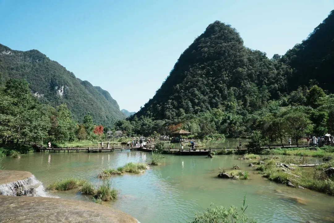 关键点位有:鸳鸯湖划船、翠谷瀑布、水上森林、68级跌水瀑布、拉雅瀑布、小七孔古桥。整个景区的动线设计和配套服务,说句实话,是远远优于黄果树的。车线和人行设计得很合理,等车不会很久,分流也不错。