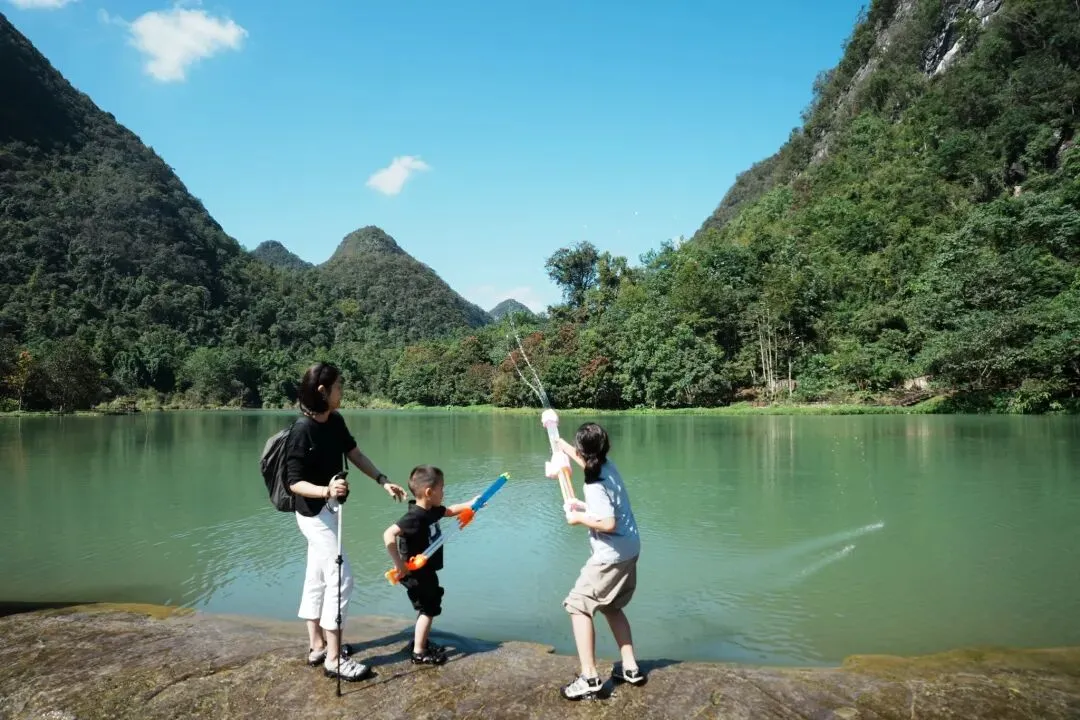 荔波小七孔 这个景点位于黔南布依族苗族自治州荔波县境内,离安顺的路程大概在300公里左右。行程4个小时。 当天我们很早就出发,选择了从西门进东门出的路线。 这条路线基本上都是下坡,比较轻松。(当然,事实证明也没有轻松到哪里去哈哈哈哈,孩子们依旧累够呛。)还有东门进入直接去小七孔的路线,大家可以搜搜攻略。