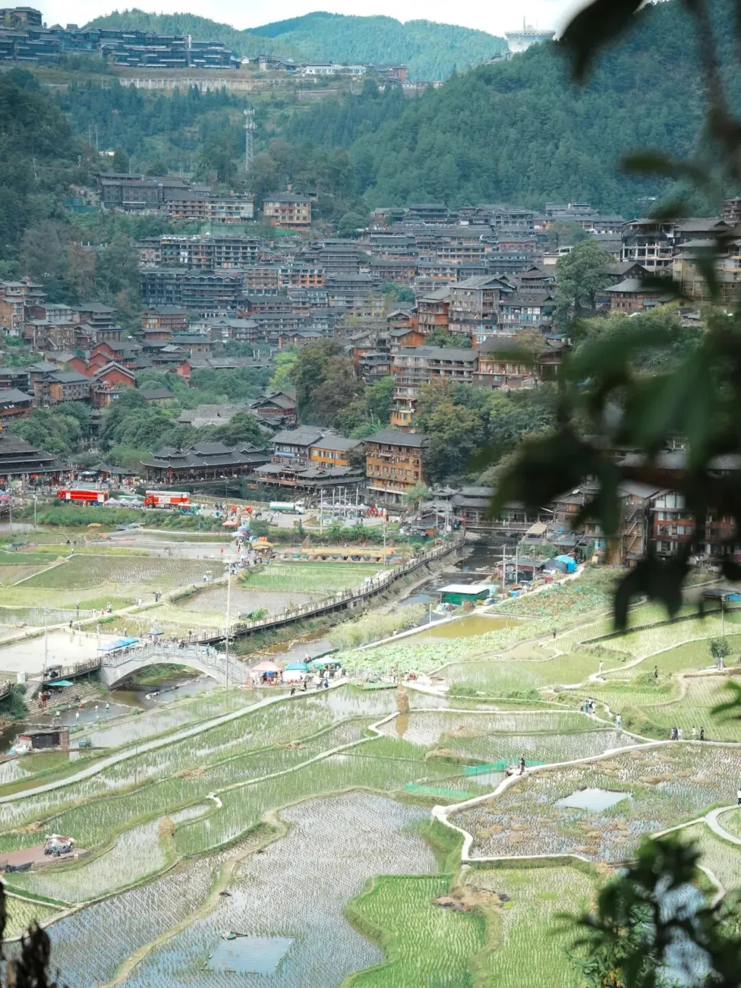 中午下去寨子里吃饭,下午看看表演和歌舞,看看绣娘们的手艺,在风雨桥上坐一会。简直是!!!人间的至高享受。 尤其是等到晚上,又带着袜子去拍了一组苗族姑娘的短视频。简直是太漂亮了。吃吃喝喝晃晃悠悠一整天,人不少,但是热闹也很好。