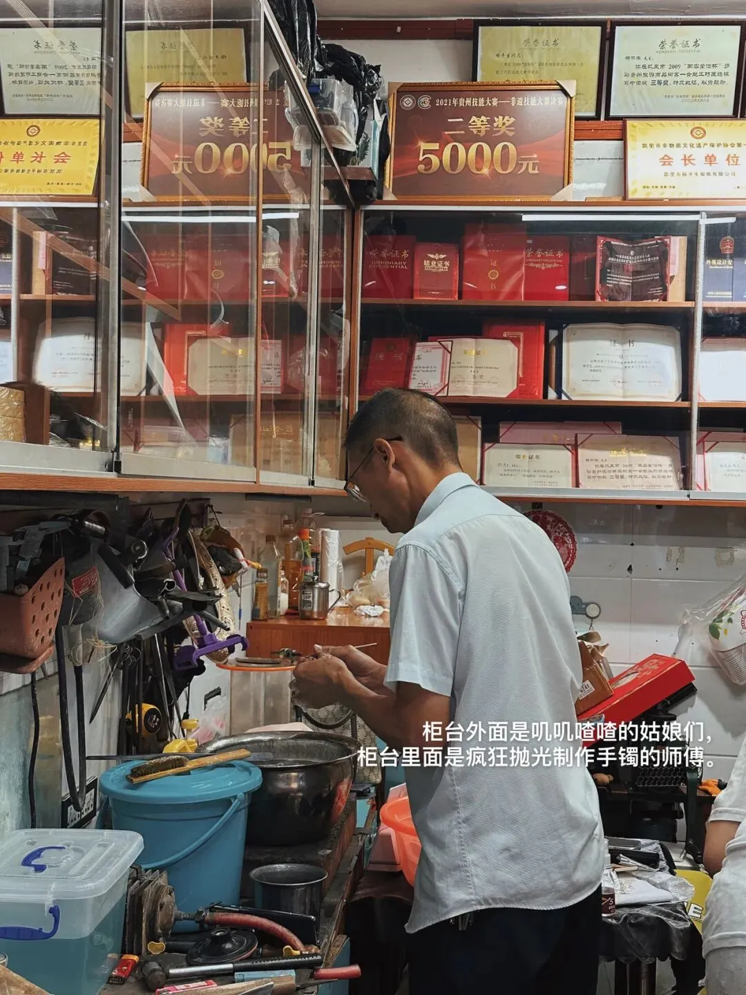 ▲正在给我打手镯的是杨平生师傅~非遗传承人。等待值得~