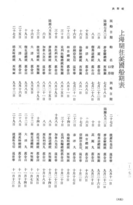 《上海开往美国船期表》 刊物的显著特点是撰稿人均为民国时期享誉文坛的新闻界、小说界乃至政界重要人物。文章文字隽永,可读性强,配发图片均为铜板印刷,清晰度较高。其中,经常为上海版撰稿的作者有赵君豪、蒋维乔、金天翮、褚民谊、邵漳秋、秦瘦鸥、陆丹林、程志政、何正璜等。为桂林版撰稿的作者有茅盾、庄泽宣、盛成、费孝通、柳无忌、徐仲年、罗莘田、马学良、郭祝崧等。这一时期的杂志学术气息浓厚,李济深曾为《西南文化专号》第二册题签,为西南各省的民族学、人文地理学、动物学、植物学、语言学、社会学、考古学的研究提供了重要的资料帮助。