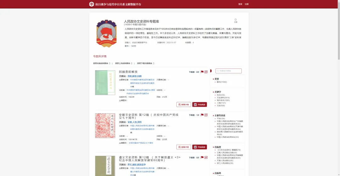 人民政协文史资料专题库上线