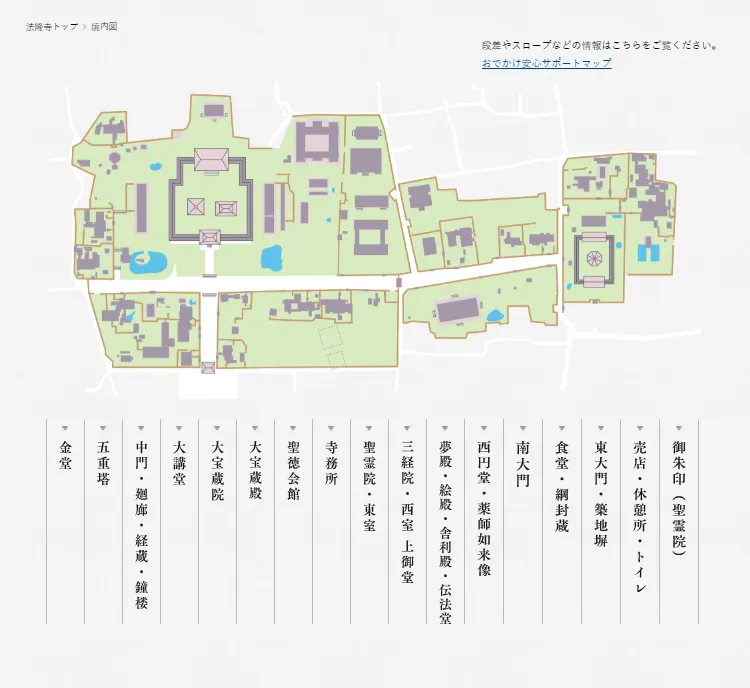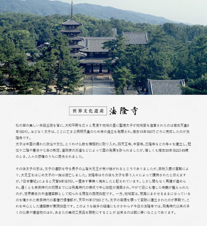 点击第一个标签“法隆寺珈蓝”,就进入此次旅行的核心景点,迎面而来的就是一个全面的介绍。