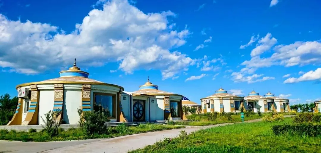 可自费参观祭祀宫,这里能看到蒙族特有交通工具勒勒车、穿蒙族民族服装照相、观看紧张刺激的草原赛狗比赛、体验蒙族民间体育射箭、观赏马术表演,人的驾驭、人马共舞、马的嘶鸣、马的驰骋、飞扬的马鬃马尾、速度与力量的美,都让人激动不已。观赏动物黑天鹅、鸵鸟、孔雀、火鸡、梅花鹿、山羊、兔子等。尽情观赏碧波荡漾的湖水,清新芳香的空气,体验蒙古民俗风情。