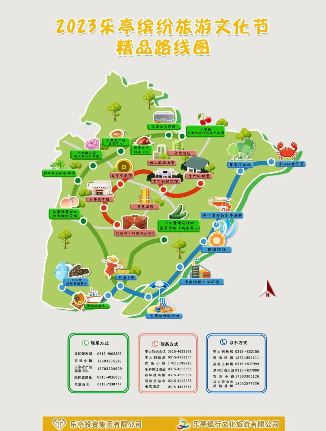 由乐亭投资集团有限公司主办、乐亭锦行文化旅游有限公司承办的2023乐亭缤纷旅游文化节,以“大钊故里 滨海田园 乐享乐亭”为主题,特意将境内的优质旅游景点以一线串珠的方式,串联成了“追迹百年红色寻根游”“渤海风情赶海拾趣游”“春色田园踏青采摘游”三条特色精品旅游线路,供广大游客自由选择。