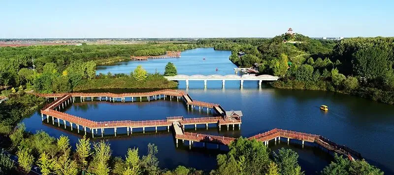 昔日废弃古河道,今日宜人乐游地。古滦河生态公园内,全县海拔最高点,标志性景观“乐安亭”得以修建,成为当下的网红打卡地。公园内水、桥、亭、岸、岛完美结合,游船泊靠区、栈桥听澜区、百荷清韵区、垂钓亲水区、田园风情区五大功能区相得益彰。以公园为龙头,以滦河为躯干, 5公里的长河景观带串起五座文化主题公园,也串起了乐亭古今文脉。