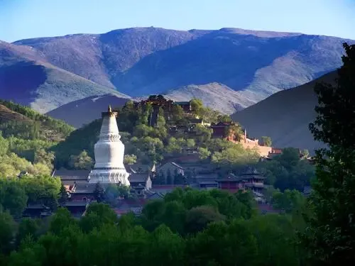 五台山由五座山峰环抱而成。这里气候凉爽,适合避暑。