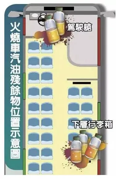 检方表示,游览车上5瓶装汽油的保特瓶,也是追查重点,只要能找出是谁去加油,就能找出事故可能原因。