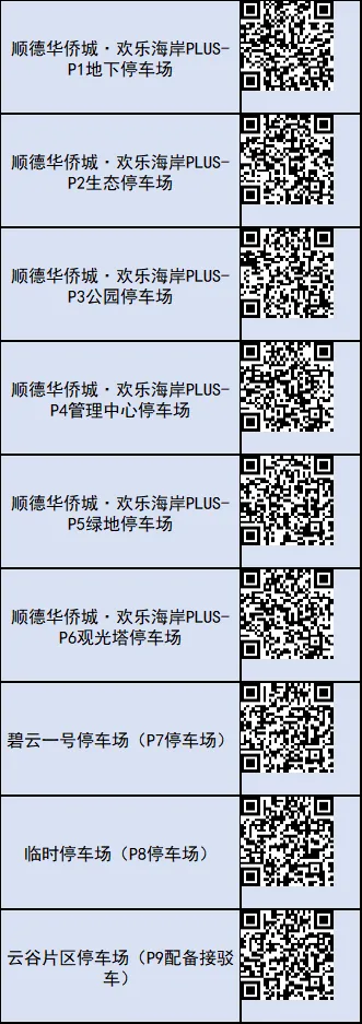 (2)停车建议:预计假期高峰时段,华侨城周边P1-P7停车场停车供应不足,停车排队预计会导致欢乐大道、乔岸路及碧桂路辅道拥堵,为避免排队停车加剧拥堵,建议游客高峰时段优先选择停车至外围P8、P9停车场,再乘坐华侨城免费接驳车或其他方式至园区。