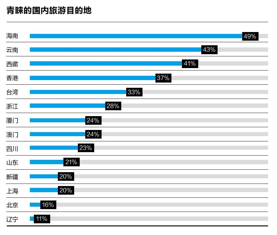 中国年轻一代高端旅游调研八大看点 1 消费能力强,旅行经历丰富 本次调研的中国年轻一代高端旅游者于1980年后出生,他们拥有较多财富,旅游消费能力强,其家庭年旅游消费42万元,其中购物消费平均22万元。服饰、手袋、钟表和珠宝是他们旅游购物的前四大项目。酒店花费上,平均每晚预算为3100元。