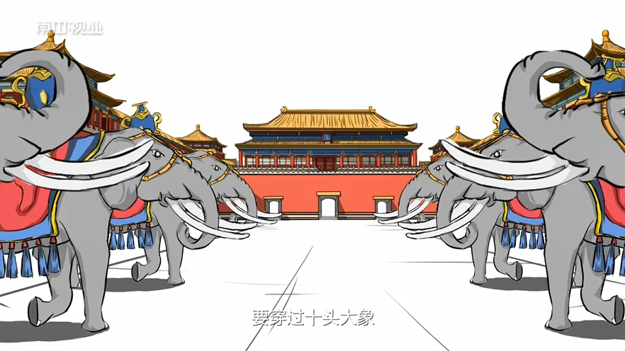 皇帝的一天·大明卷,我们以空间为轴心。 故宫,首先是明宫,与今天的清代版故宫,大有不同。 永乐十九年春正月,大明帝国的新宫殿正式开张志囍。大明皇宫的第一任主人永乐皇帝朱棣在奉天殿(如今的太和殿),大宴文武群臣,还有四夷朝使。 那一天,据说宫中有十万人。使臣进宫,要穿过十头大象,从大象的鼻子下面通过。