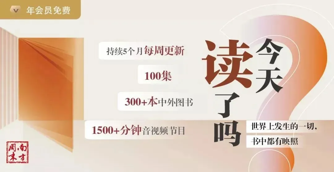 今天读了吗? (原价138元 南周年会员免费) 一季100集,以书串讲,1500+分钟音视频节目,300+本中外图书,10集视频加餐,和文化大咖一起畅聊。