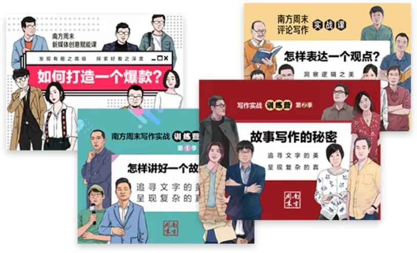 南周原创写作实战系列课程是南方周末自行研发的精品课。非虚构写作课团队讲师既包括南方周末前记者南香红等老师,也有王天挺、杨潇等非虚构作家;新媒体赋能课讲师团包括新世相主编李妙多、黎贝卡异想世界创始人黎贝卡等。2021年还新推出了阅读写作课、虚构写作课等。