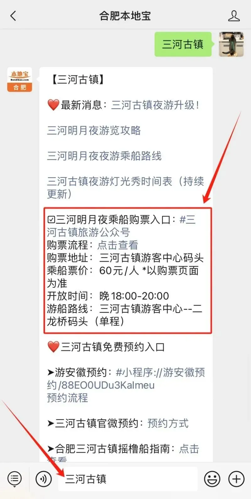 😘小编提醒:点击下方公众号名片关注合肥本地宝,在聊天对话框回复【三河古镇】即可获取游船购票入口!