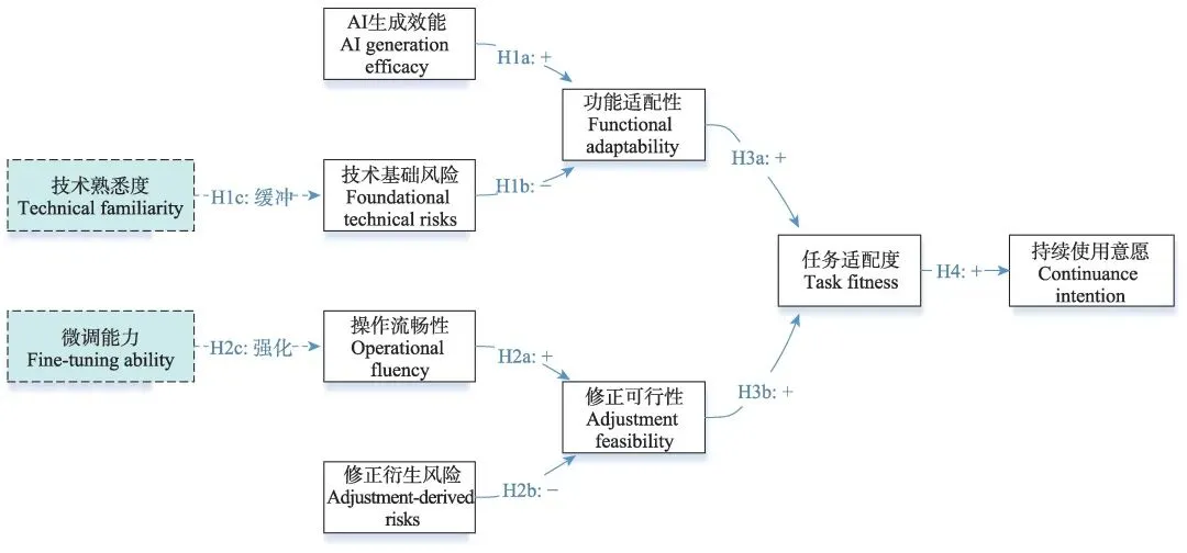 2)修正可行性→任务适配度→持续使用意愿:高效优化能力(时间、认知、情绪成本低)将支持方案迭代精修从而实现需求深度满足,提升用户持续使用意愿[13,20,47]。