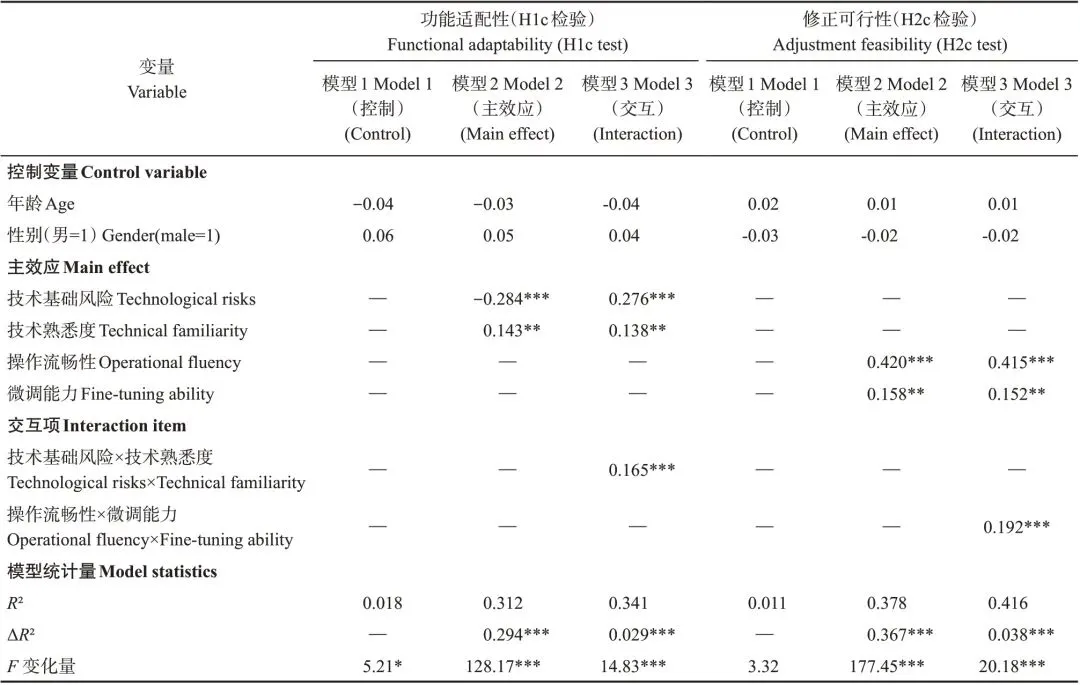 H1c:技术熟悉度负向调节技术基础风险对功能适配性的抑制作用