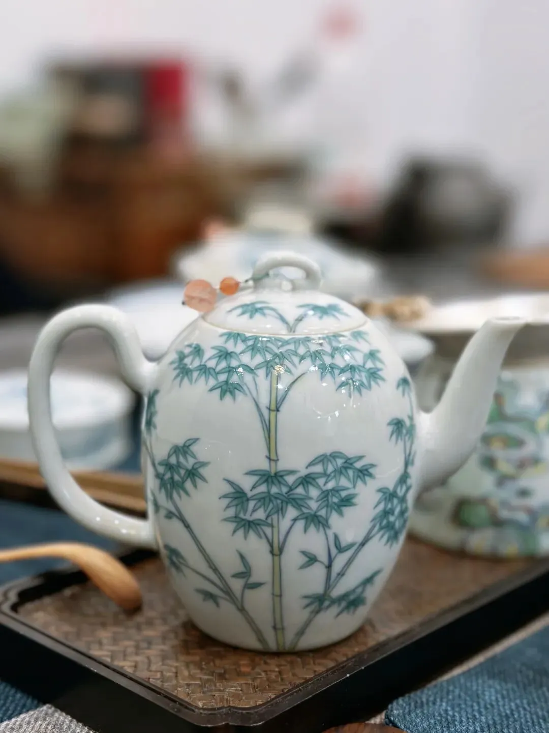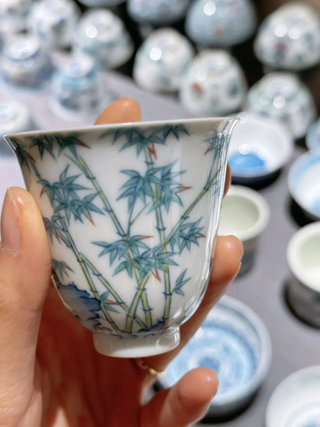 器物就是一眼的缘分,我相中了套「青花斗彩石竹纹」系列,轻轻盈握,风摇翠竹,青花与彩,美美与共~