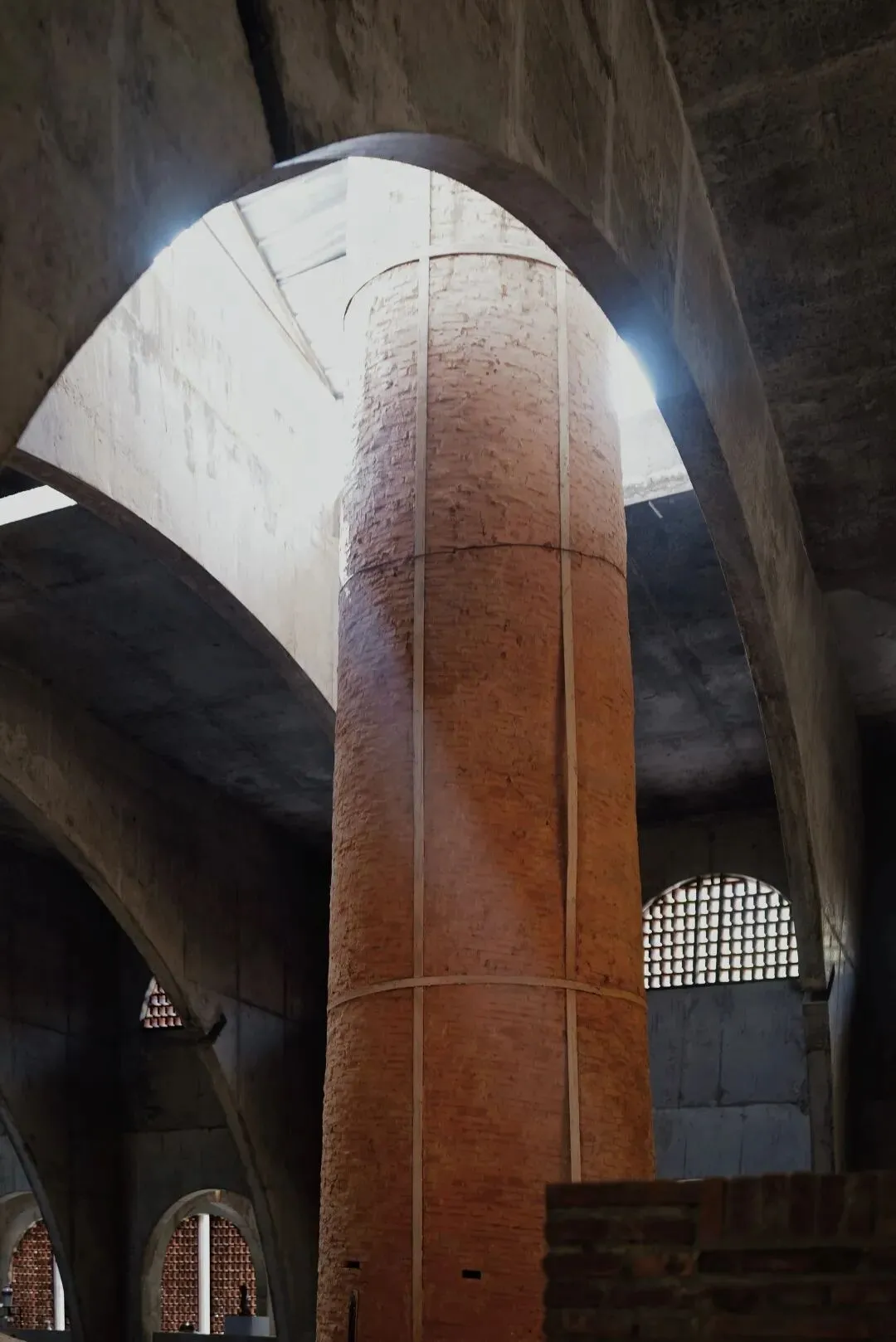 老实说一进门的神圣感有丝丝光之教堂的影子,但比起那种强烈的秩序感多了一份温润而泽。拱顶天窗中间的一道细光,随节气移动,光影与火在这里交融绽放,怪不得大表姐也要在这里拍大片~