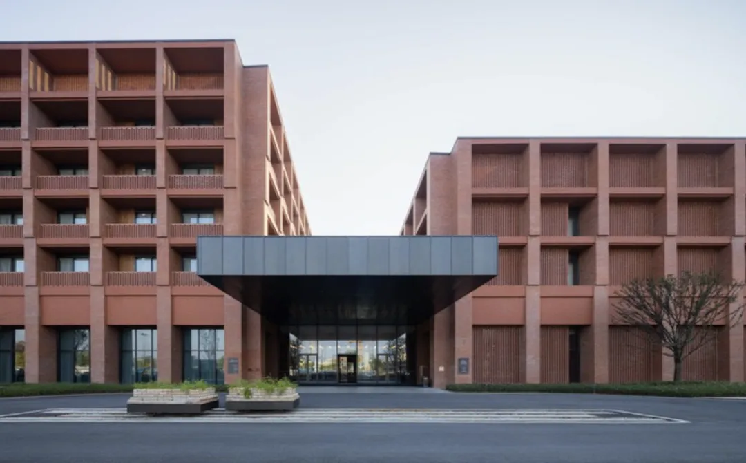 八十年代的老厂房在新出炉的普利兹克建筑奖获得者、英国建筑大师David Chipperfield的改造下犹如陶土被釉烧后焕发新生,充满秩序美感。四栋赭红色的回字形方块建筑矗立在陶溪川大剧院对面,在光影的交汇处延伸出不同的颜色和肌理,简洁肃穆。
