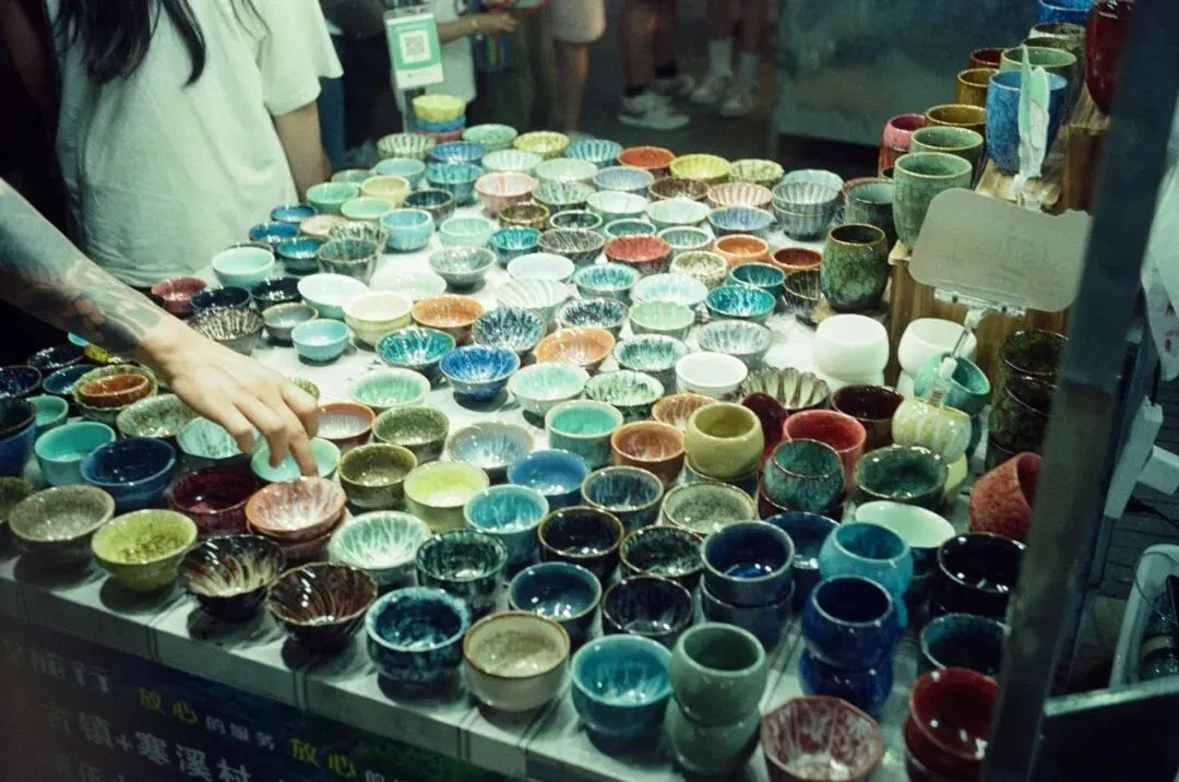 到了之后,这些疑问一下就清楚了:景德镇根本就是一座“陶瓷主题商城”。整座城围绕陶瓷运转,从地摊上一块钱一串的陶瓷手链,到艺术市集里贵得离谱的限量潮玩,各种档次、各种风格的陶瓷商品无处不在。除了卖货,还有各种体验消费——玩陶艺、吹玻璃、扎染布……把“陶瓷+旅游”玩到了极致。