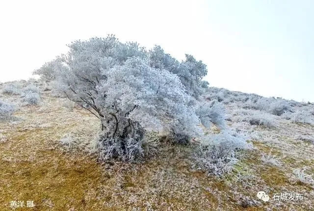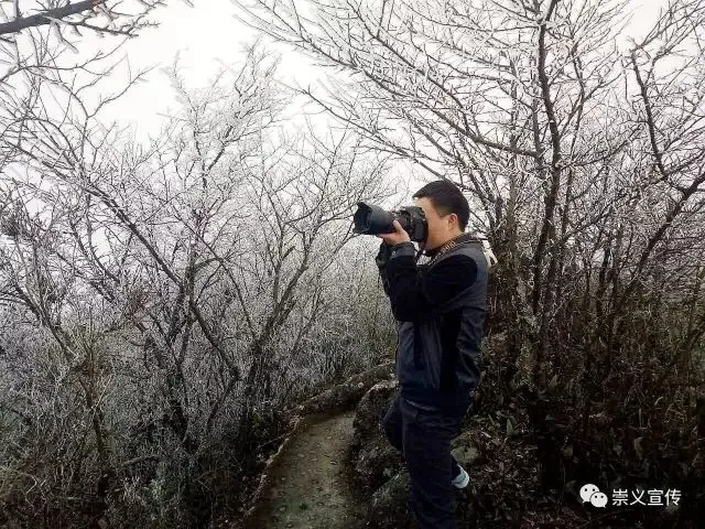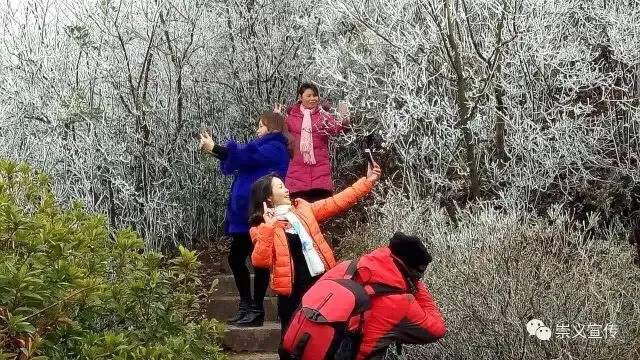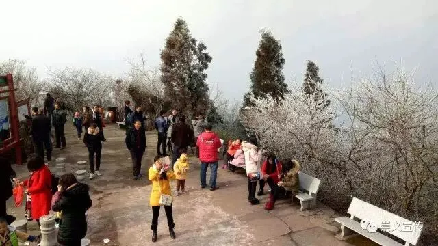 雾凇的出现,阳明山变得玲珑剔透,如童话世界,美不胜收,吸引了大批游客上山观赏美景。