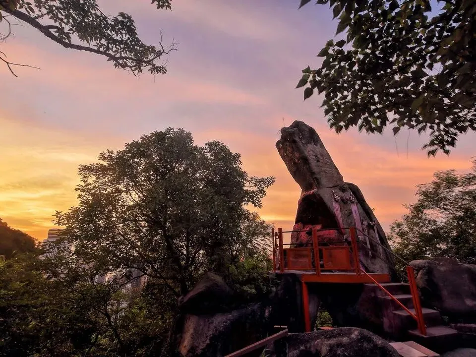 步入宝云道你便能看到一块9米高的大石,这便是每年农历七月七日大家都会来膜拜的姻缘石。