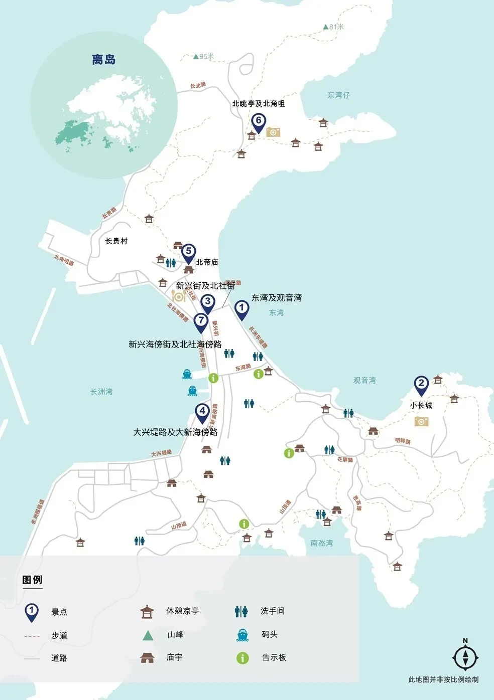 🧭推荐景点:东湾及观音湾、小长城、新兴街及北社街、大兴堤路及大新海傍路、北帝庙、北眺亭及北角咀、新兴海傍街及北社海傍路