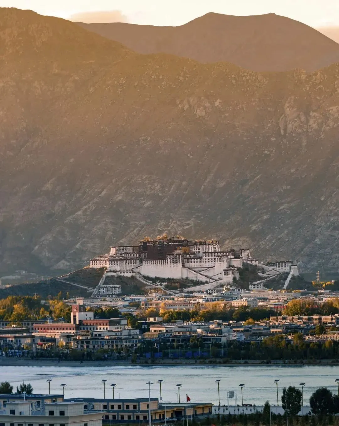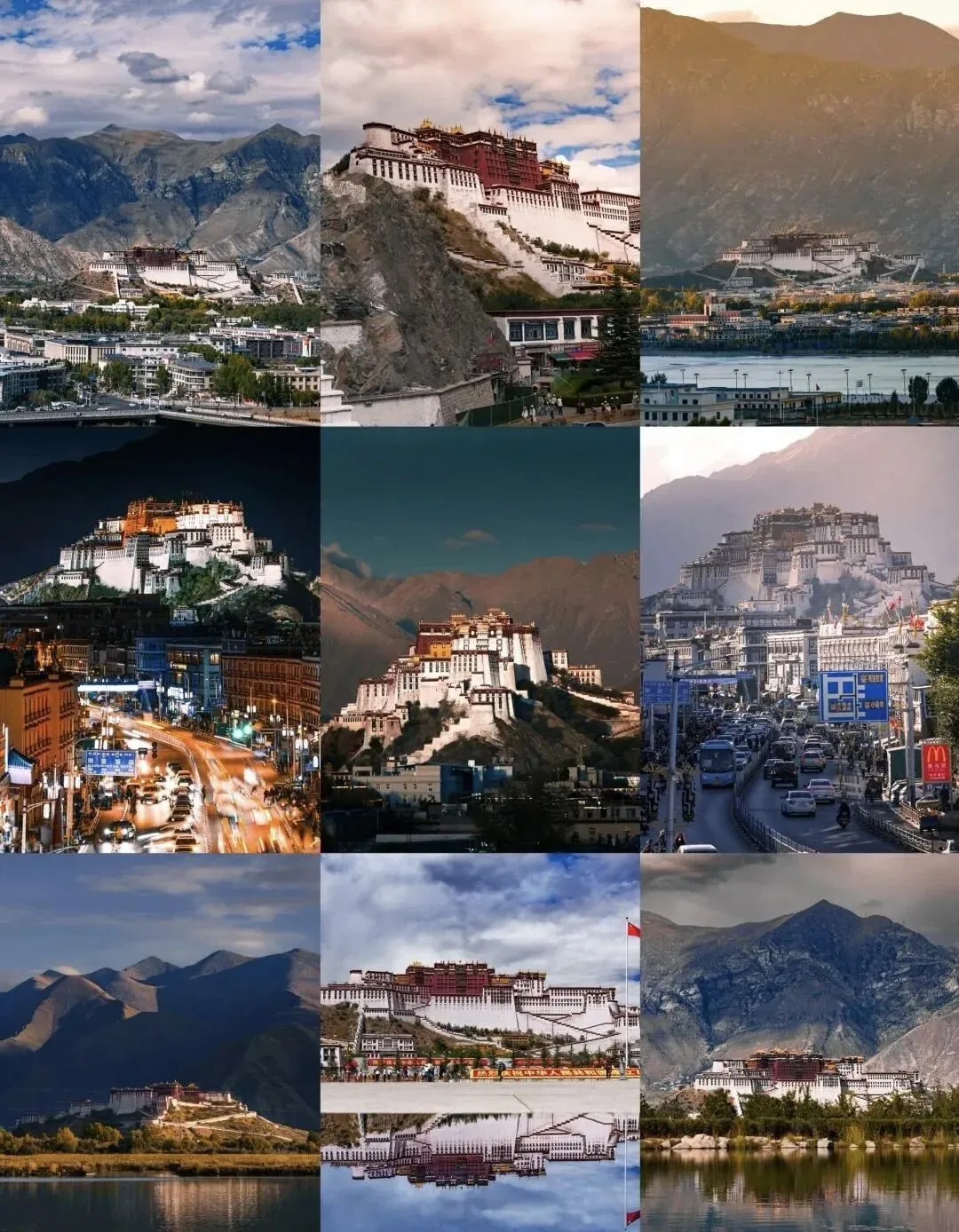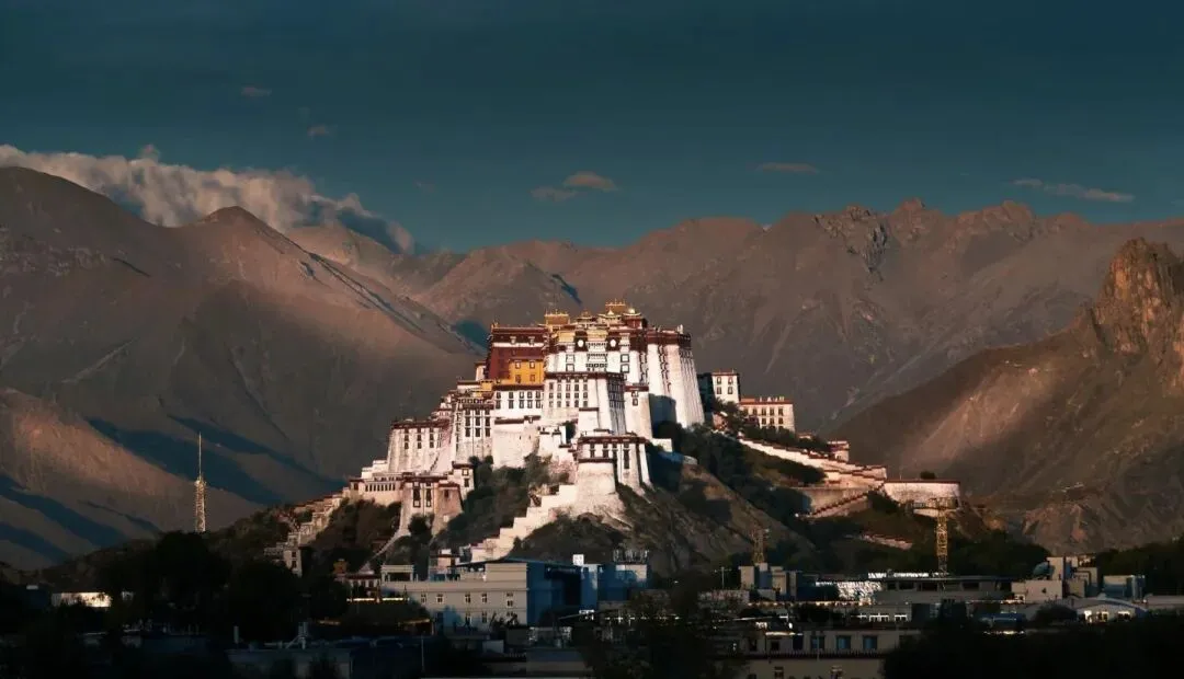 日出时,它被金光笼罩;日落时,它与晚霞同辉;夜晚灯火亮起,又温柔了整座拉萨城。