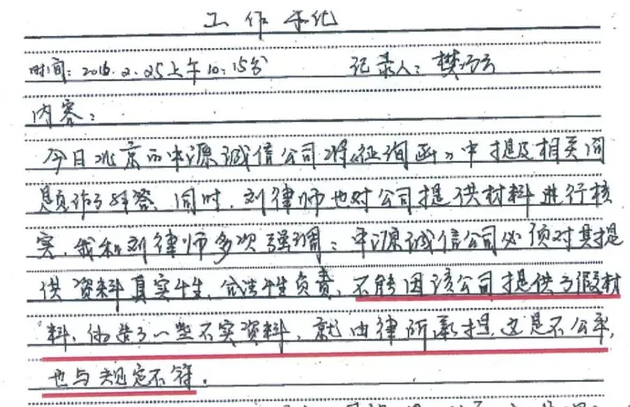 更加让人好气又好笑的是,日记中称,“中源诚信必须对提供的资料真实性、合法性负责,不能因为该公司提供了不实资料,就由律所承担,这不公平,也与规定不符。”