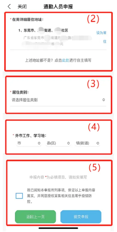 注:“在莞居住”、“外市居住”都支持“代亲属上报”,具体均可参照以下步骤。