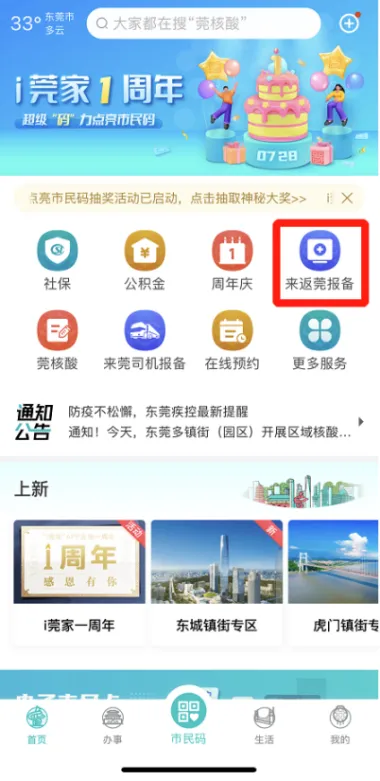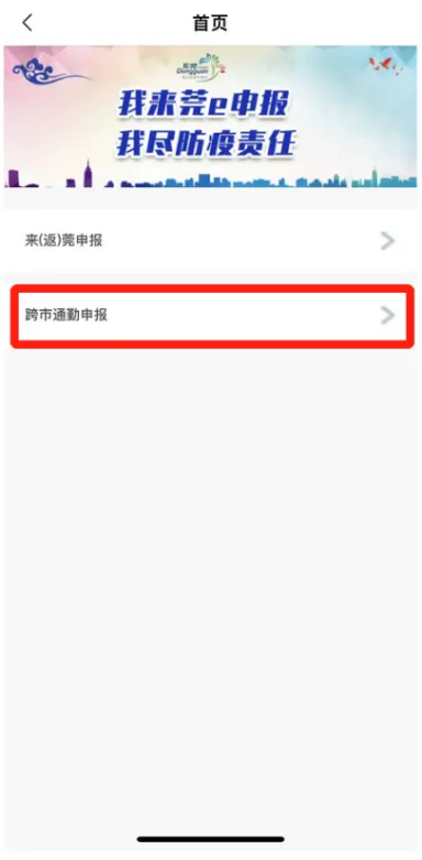 跨市通勤人员通过“i莞家”APP(须注册,认证身份),进入“来返莞报备”点击“跨市通勤申报”;