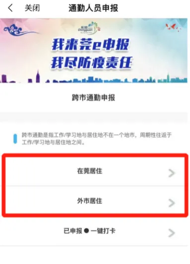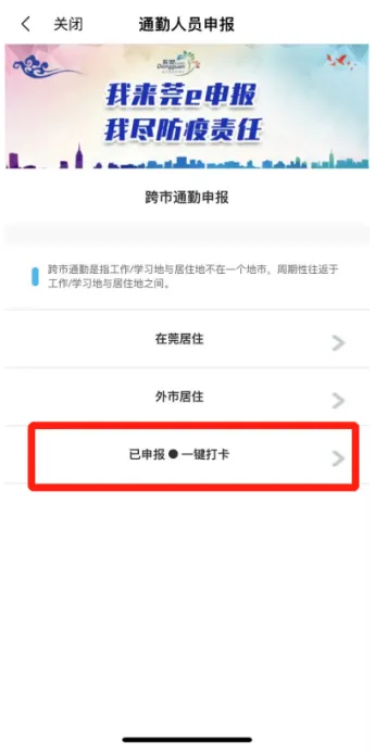当通勤的城市发生本土疫情或输入性风险较大时,在每一次通勤抵莞后,需进行一次打卡。