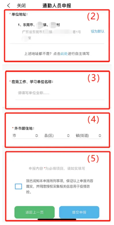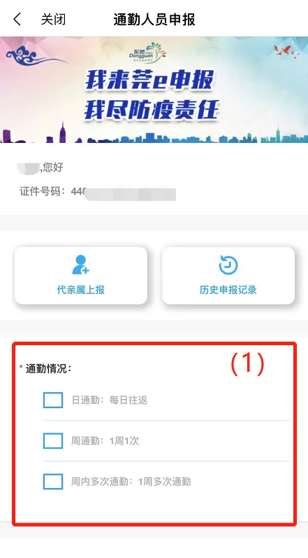 (1)“通勤情况”选择,请按实际情况勾选“日通勤、周通勤、周内多次通勤”;