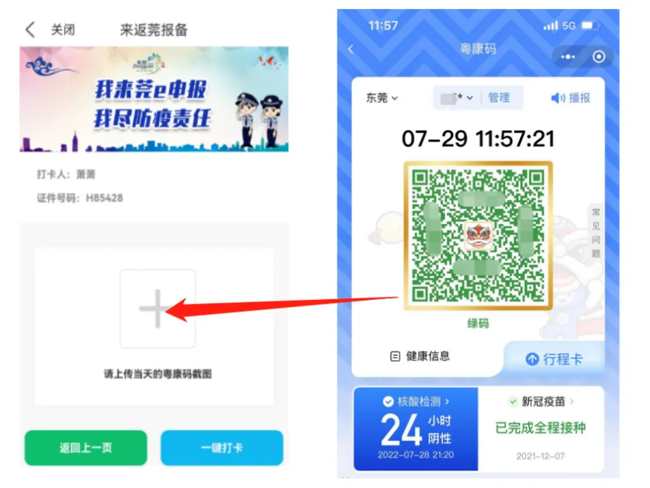 第三步:上传最新的粤康码截图,完成后点击“一键打卡”。