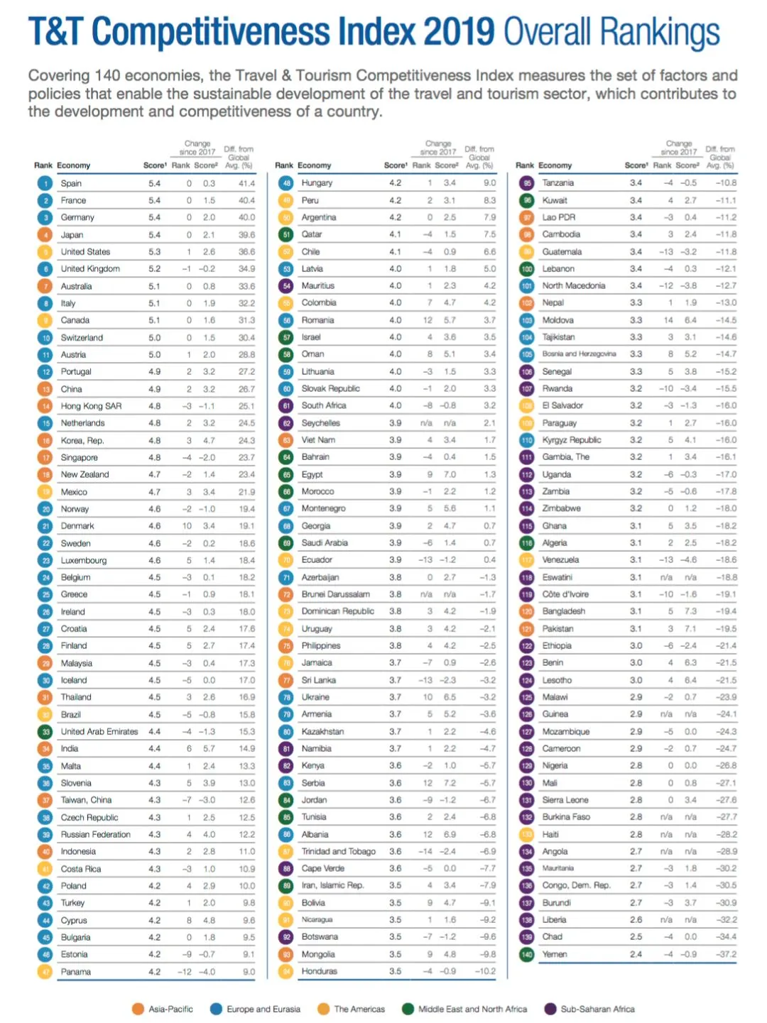 2019年旅游竞争力报告:西班牙第一 中国排名上升