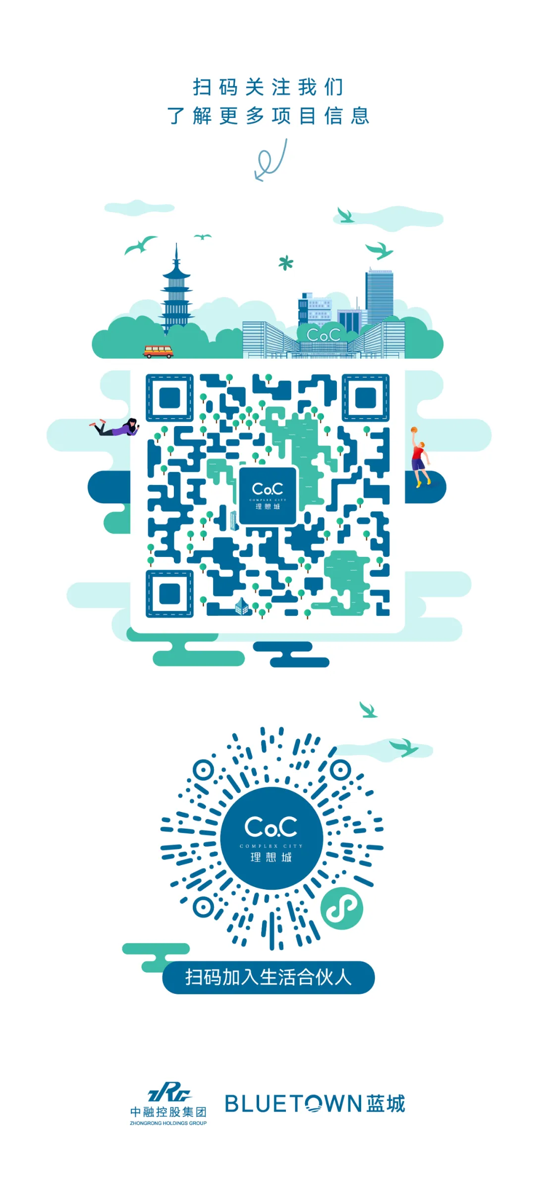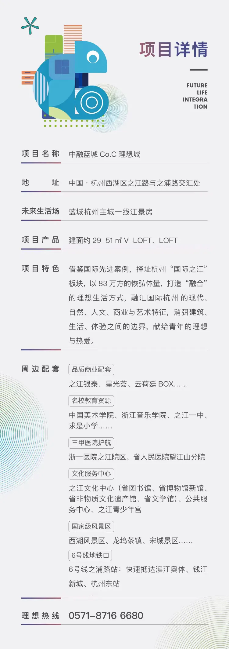 *本项目推广名为“中融蓝城Co.C理想城”,备案名为“杭州国际金融会展中心”。开发商:杭州中融控股集团有限公司;代建方:蓝城房产建设管理集团有限公司。预售证号:杭售许字(2021)第005021号。本宣传资料为要约邀请,不构成合同要约或承诺;资料中相关内容不排除因政府相关规划、规定及开发商未能控制的原因而发生变化;且对项目周边环境、交通、教育商业及其他配套设施的介绍,旨在提供相关信息,不意味着本公司对此作出了承诺,买卖双方的权利义务以双方签订的《商品房买卖合同》及附件为准;本公司保留对宣传资料修改的权利。本资料制作时间为2024年2月,敬请留意最新资料。