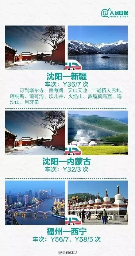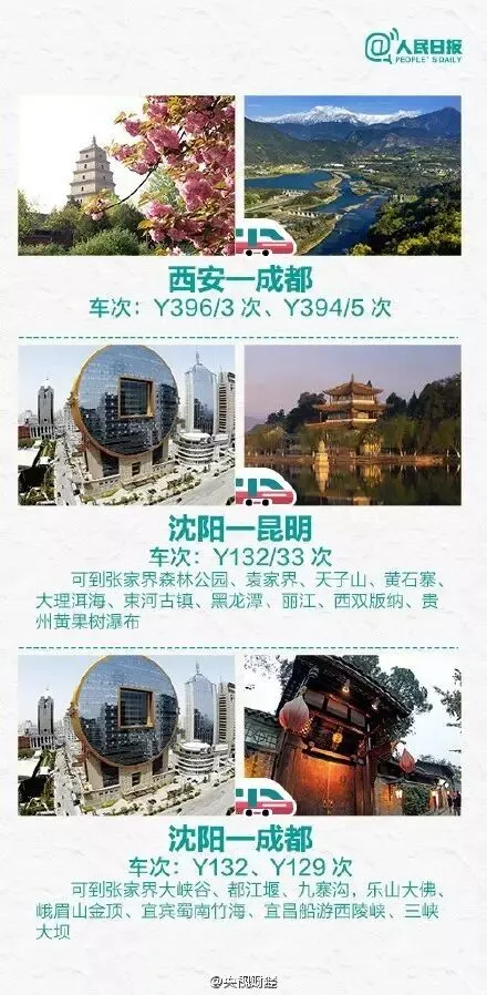 铁路部门围绕满足红色旅游、老区旅游、边疆旅游、家庭旅游、休闲旅游和生态、森林、工业、体育等特色旅游需要,将旅游客流组织由出发地组织实现向到达地组织的转变,增开多趟前往旅游城市、景点的旅客列车。详情请速戳↓↓↓