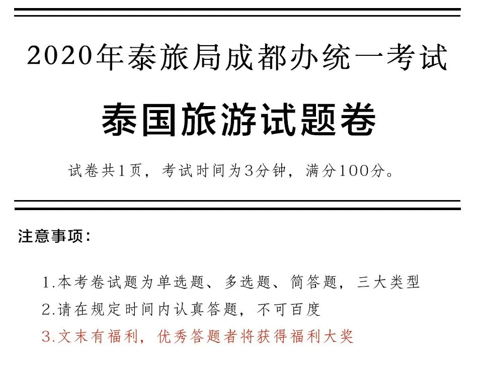 福利 | 进来考试!《2020年泰国旅游试卷题》.pdf