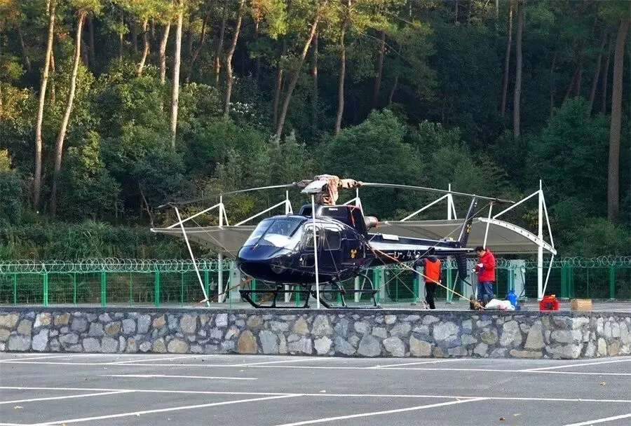 为扩大溪口旅游景区在国内的知名度,促进航空与旅游产业的有机结合,拉动奉化全域旅游发展,奉化市溪口旅游集团有限公司与宁波东海通用航空有限公司协定,在雪窦山游人服务中心开展直升机低空游览项目。现已完成停机坪、侯机木屋、安检没备等项目,直升机也到位。