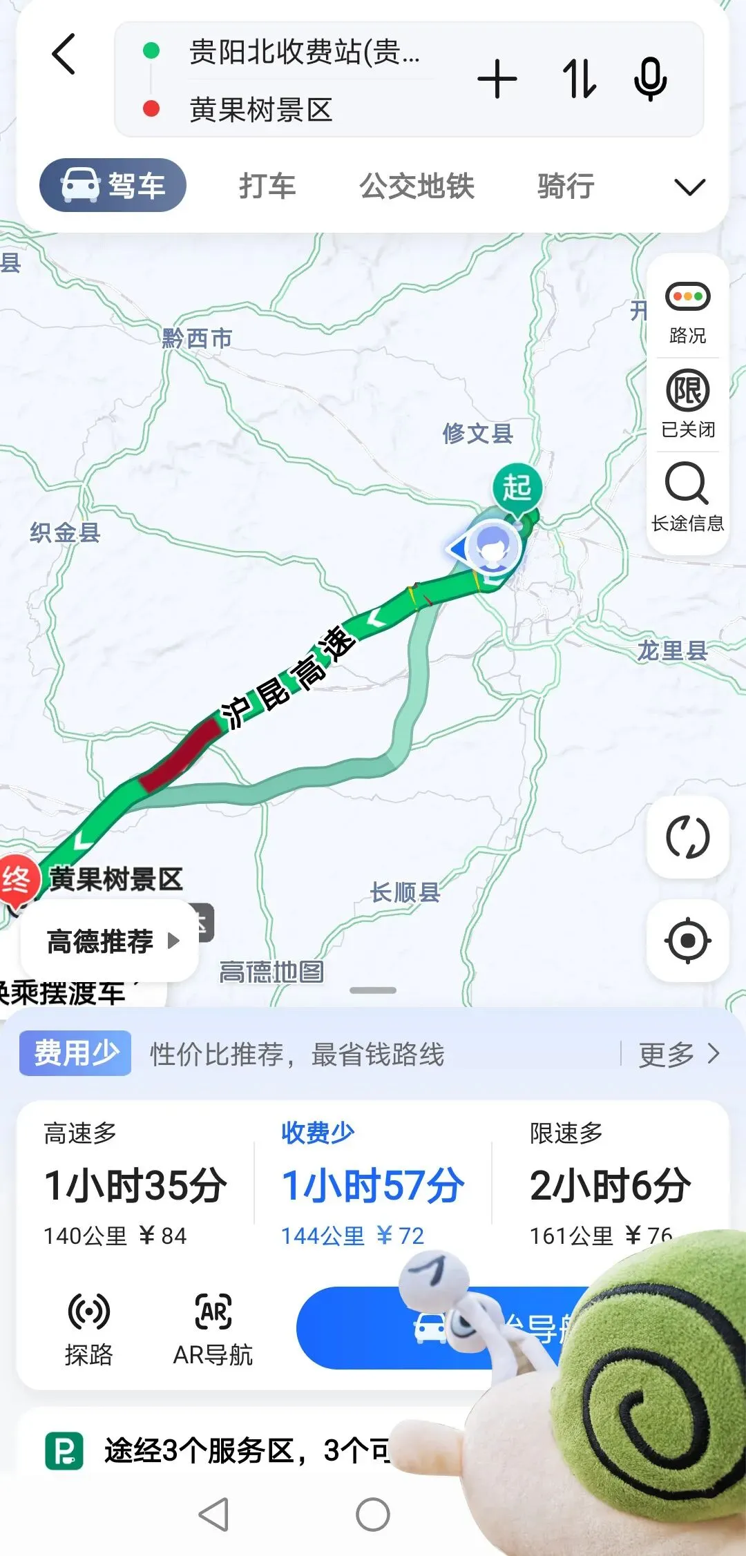 黄果树景区观光车最新攻略,超全!避坑!我是自驾,从贵阳到黄果树,在贵阳北站上高速,导航直接搜索“黄果树景区”。我选择了最短的路线,144公里,常规用时1小时57分钟,但遇到黄金节假日,是到不了的。 景区附近有很多停车场,我选择了离票务大厅最近的停车场。
