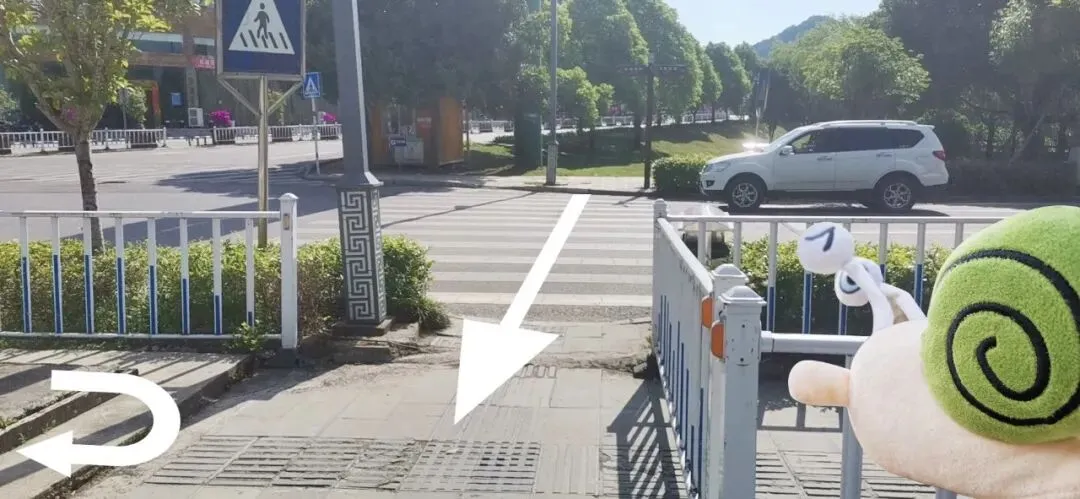 出口走出过人行道,左转