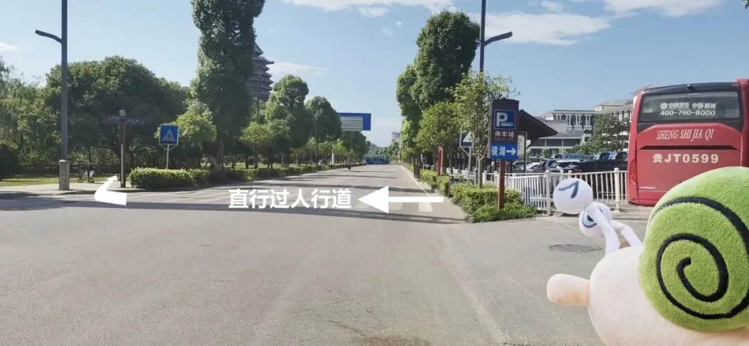 ,即看到观光车乘车点指示牌,往前走即可到达。
