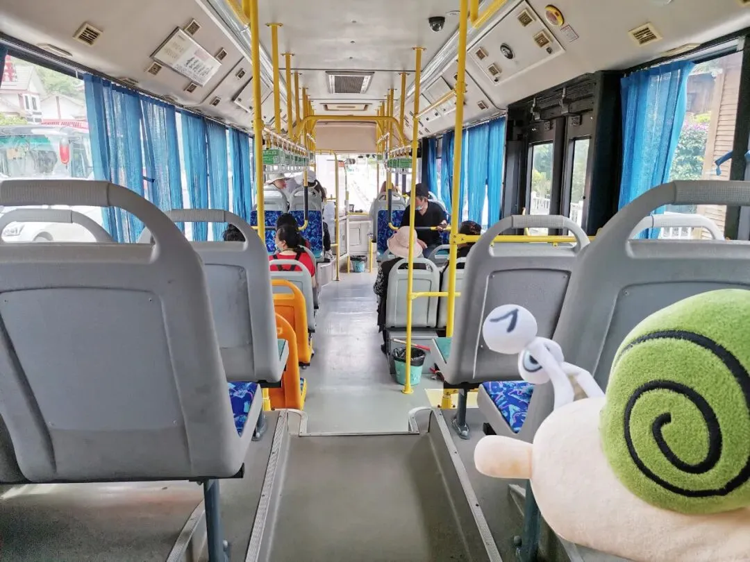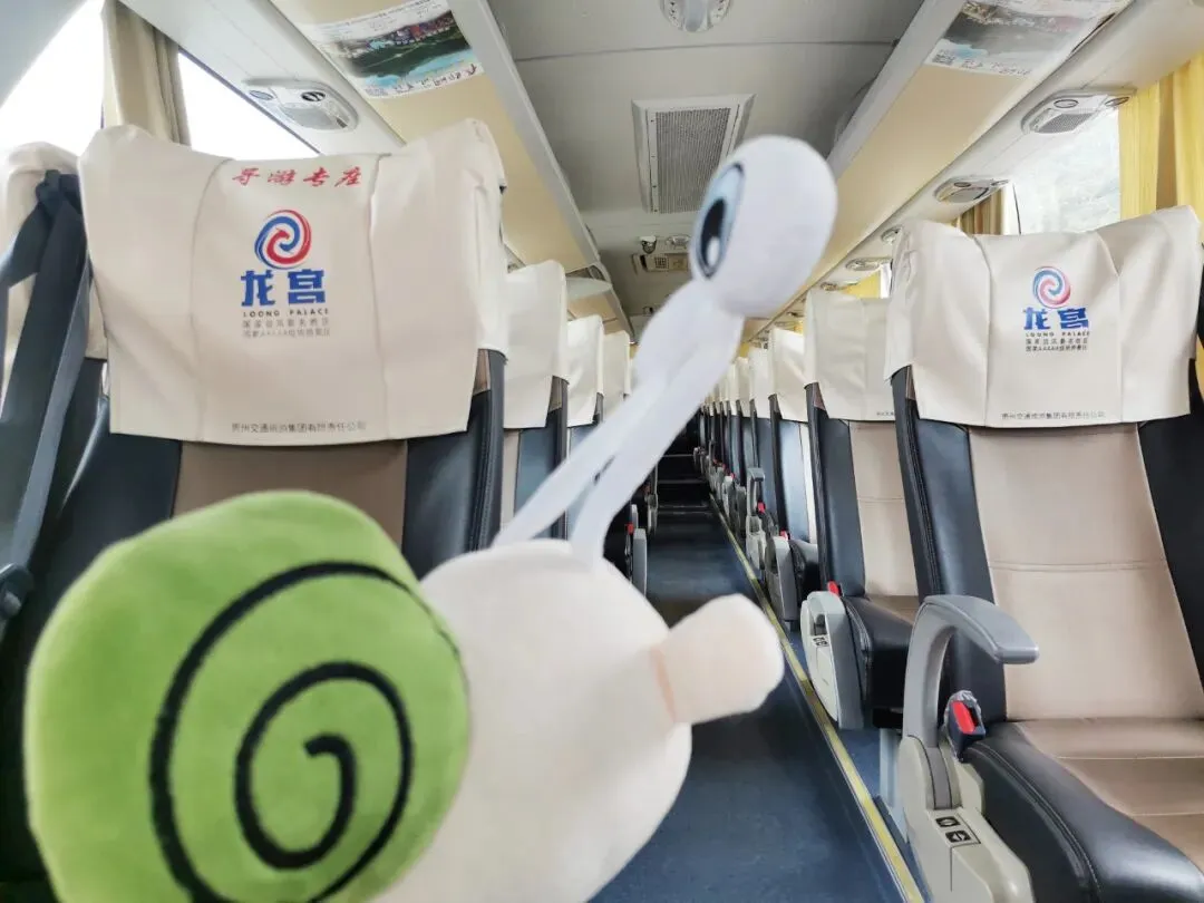 乘坐观光车第一步,手持贵州健康码(省外的朋友也可打开你所在地的健康码,也可打开贵州健康码),测量体温,一路跟着指示牌走即可,下阶梯44步左右,即可看到乘车点。因为是五一假期,我们排了20分钟左右,建议宝宝们选择淡季游玩,避免造成心情的烦躁,影响景区体验感,但最让我崩溃的是什么? 我排了20分钟左右,居然显示我的票是无效票。工作人员告诉我,因为我预约的入园时间是09:00-09:30,已经过了。需要我回到票务大厅找工作人员办理迟到的问题,即可乘车入园。 去票务大厅办理后,是不是又要重新排队。答案:不是的,你找到工作人员办理迟到问题后,回到乘车点,找到检票的工作人员进行情况说明,即可乘车。 淡季时,每十分钟一班。但对于旺季来说,装满就走,装满游客就是30秒的事情。 路边的观光车一辆接着一辆,它有两种车型,一种是公交车,一种是大巴车。蜗牛牛乘坐的是公交车类型的,全车空调开放。 我们是11:39分上的观光车,11:44分到达第一站景点陡坡塘。司机师傅都会说:陡坡塘景区到了,有需要游玩的游客请下车。 在这里,大部分游客都会稀里糊涂的选择下车。如果你不想去陡坡塘,就不要下车,继续坐到下一个景点。 到达第二个景点天星桥后,有两种情况。淡季时,师傅会告诉你下车,去乘坐前排的第一辆观光车,这是鉴于你不想游玩天星桥的前提下。 如果你要去往大瀑布,就要换乘前排正在等候的车辆,因为在天星桥的观光车辆都是依次排队等候,所以,你要是想去大瀑布,就得换乘去做前面的车。 旺季时,听从司机师傅的安排。 逛完景区结束后,也是在下车的地点上车,前往下一个景区。 所以,请合理安排好自己的路线。