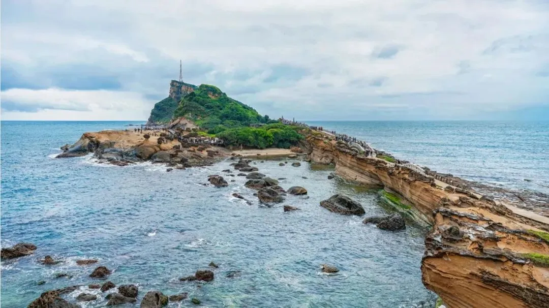 看一看野柳地址公园里的“女王”,再一次惊叹大自然鬼斧神工的神奇。 38 从八斗子车站出来,蓝天白云青山大海铁道火车行人,满足你对浪漫的所有想象。 39